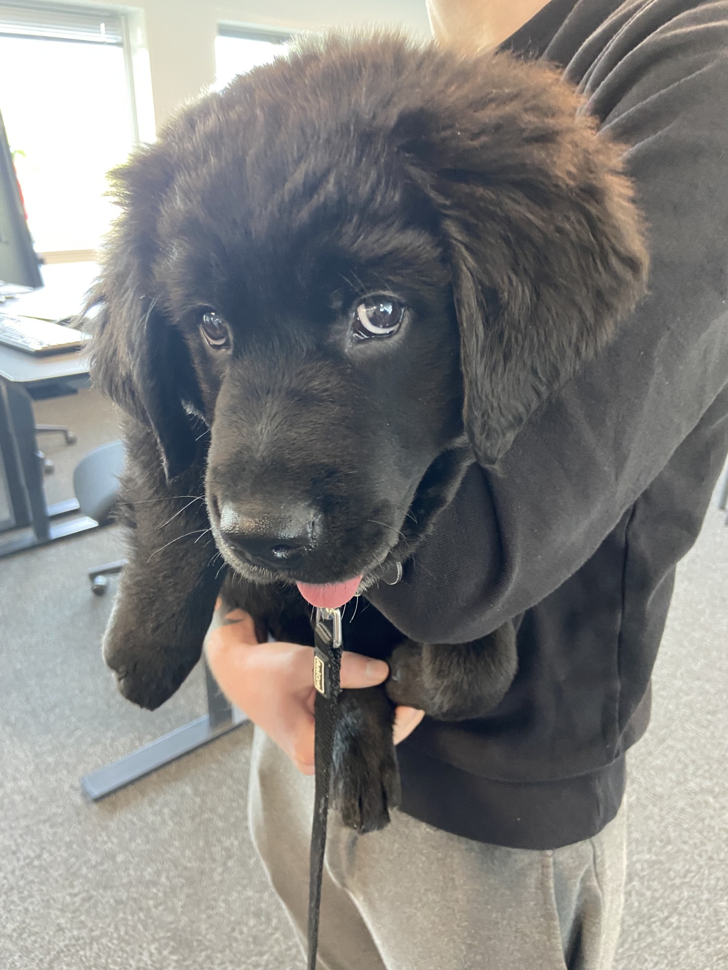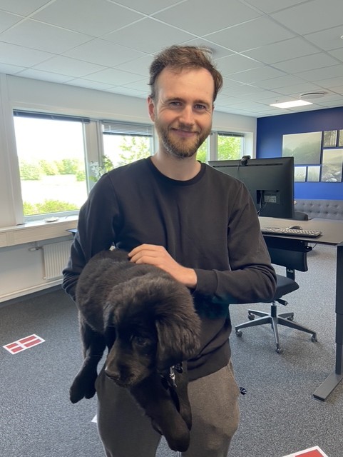 Vi krævede naturligvis et barselsbesøg – EFTER Cosmo var blevet stueren. Gulvtæpper og hvalpeulykker er en dårlig kombi, og vores managed service dækker altså ikke rengøring af tæpper.